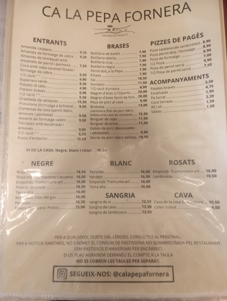 To avoid disappointment, be sure to book in advance, as locals and visitors alike flock to this beloved hotspot. Restaurant Ca la Pepa Fornera is an unforgettable journey for your taste buds!